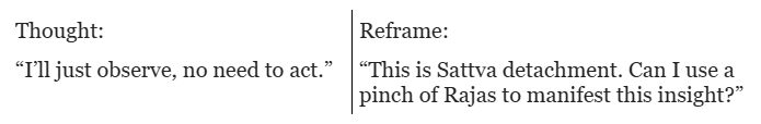2. Name — Say silently: “This is Tamas/Rajas/Sattva in me right now.”